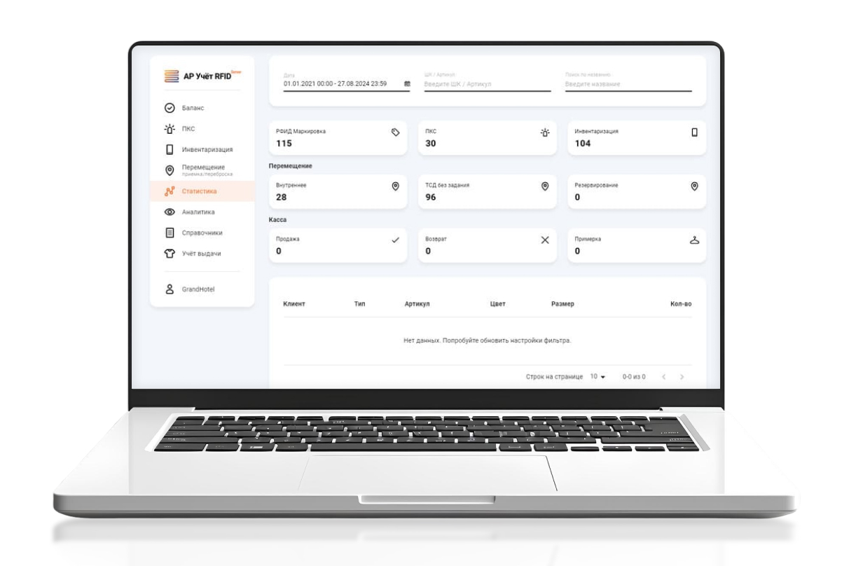 Программный комплекс «АР Учёт RFID: Server» создан специально для контроля и учета бельевого фонда. Он позволяет получать данные для стратегических бизнес-процессов: