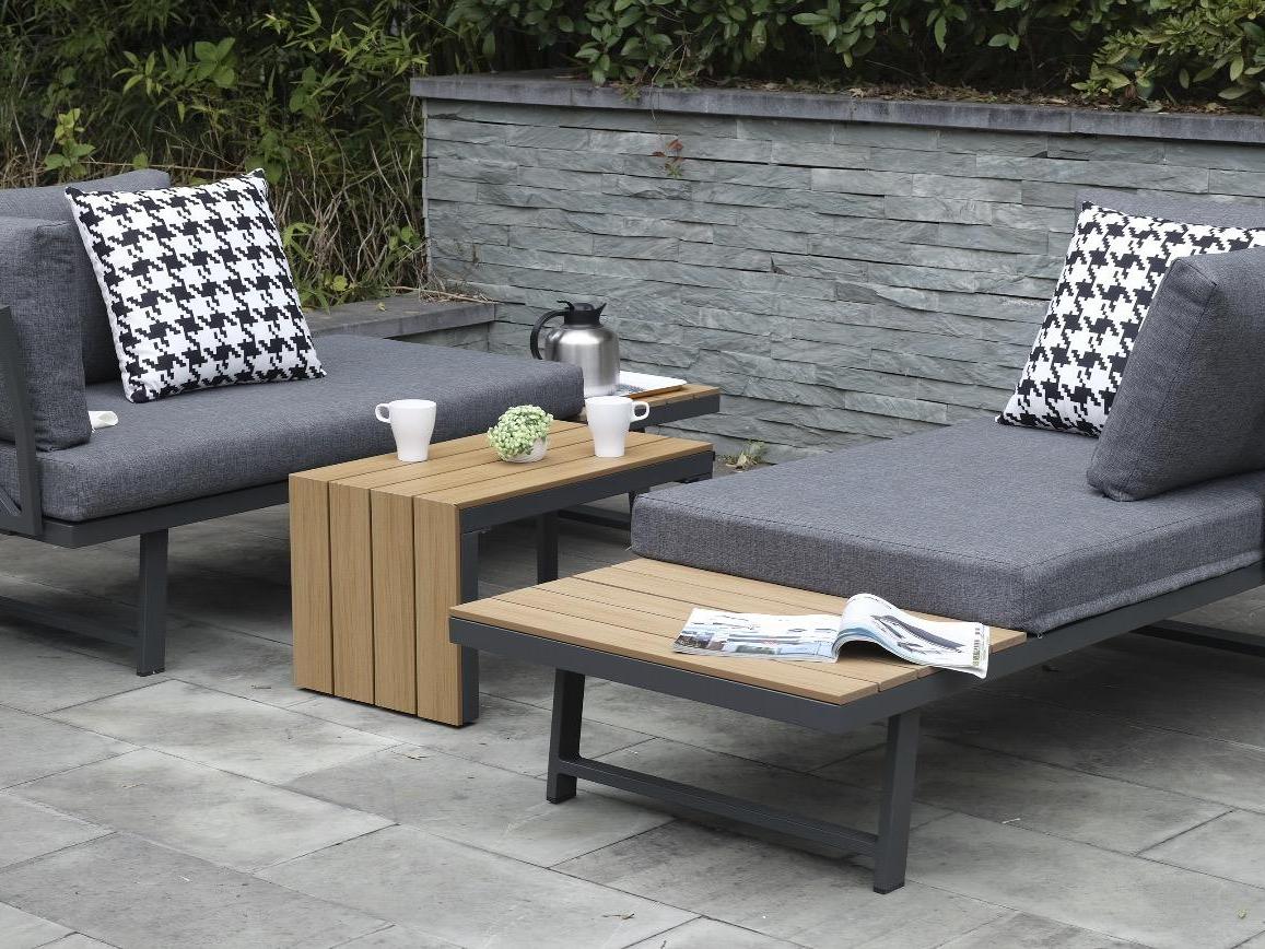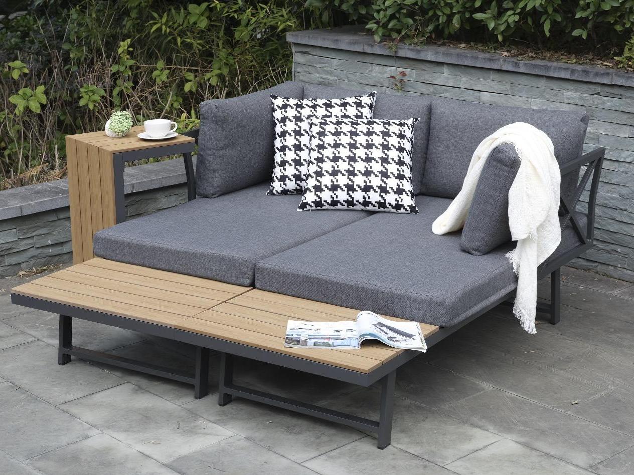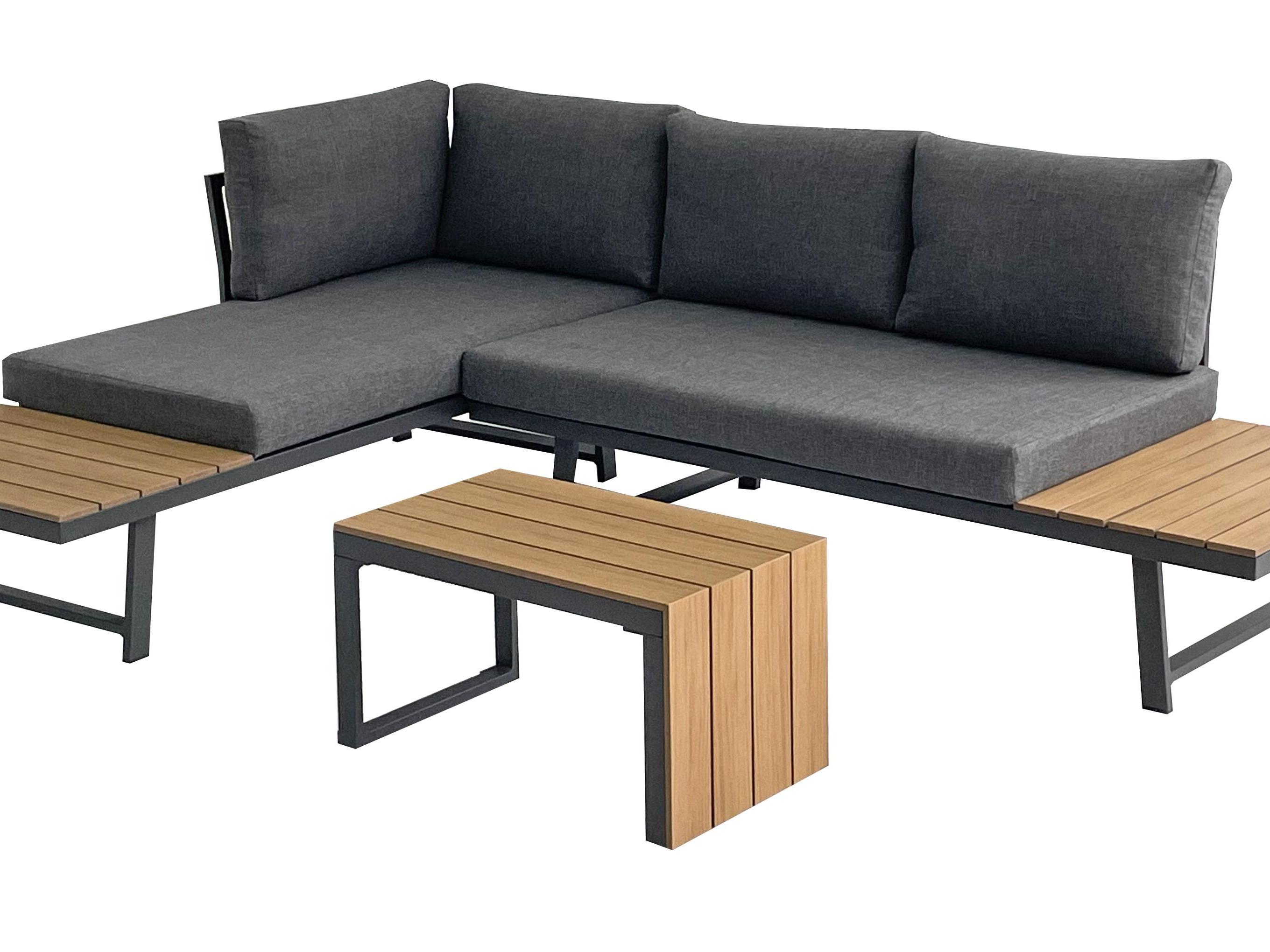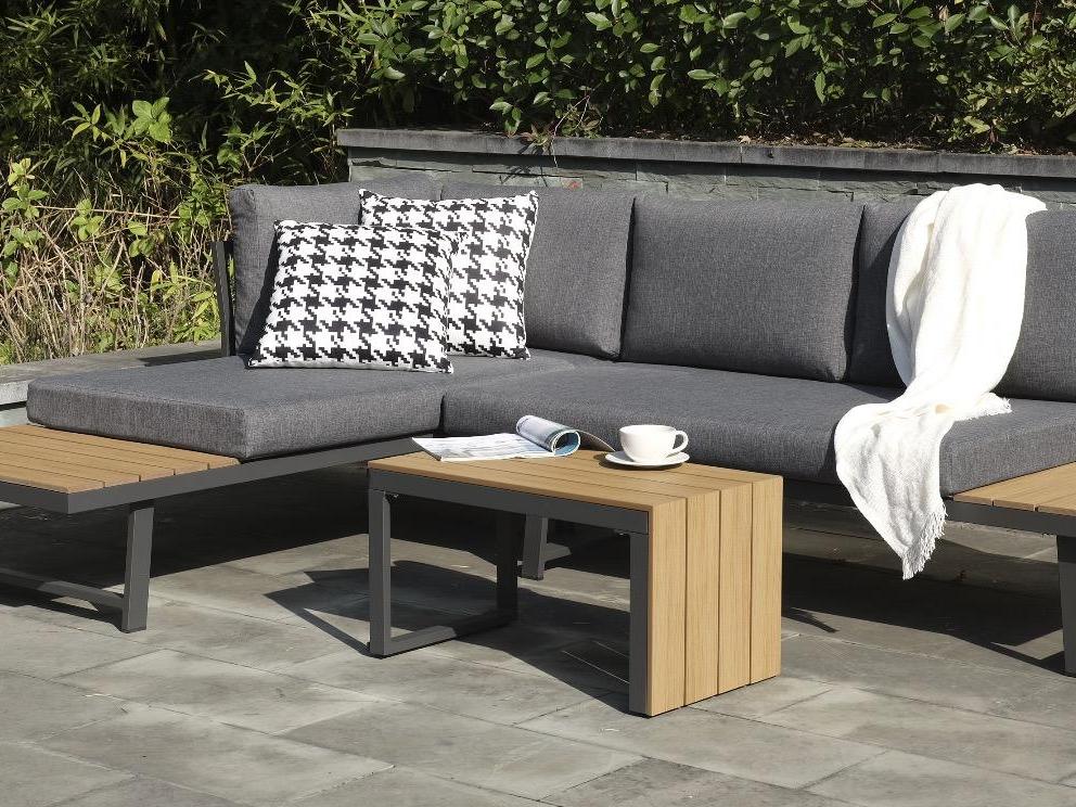 Комплект мебели "Мульти-сет" изготовлен из алюминиевого профиля с термопечатью "под дерево", комплектуется комфортными подушками в чехлах из ткани с водотталкивающим покрытием (полиэстер).