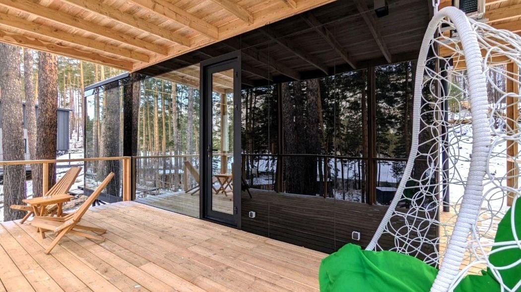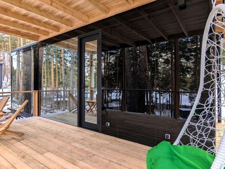Благодаря панорамному остеклению помещение внутри ощущается просторным и светлым.
