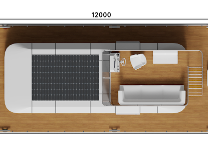12х5,3 м) Площадь палубы 35,6 кв.м, площадь жилого модуля 28 кв.м. , состоит из жилой комнаты и укомплектованного санузла с душевой.
