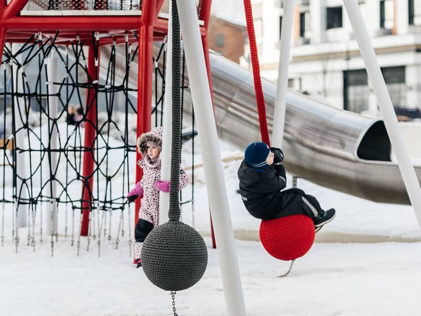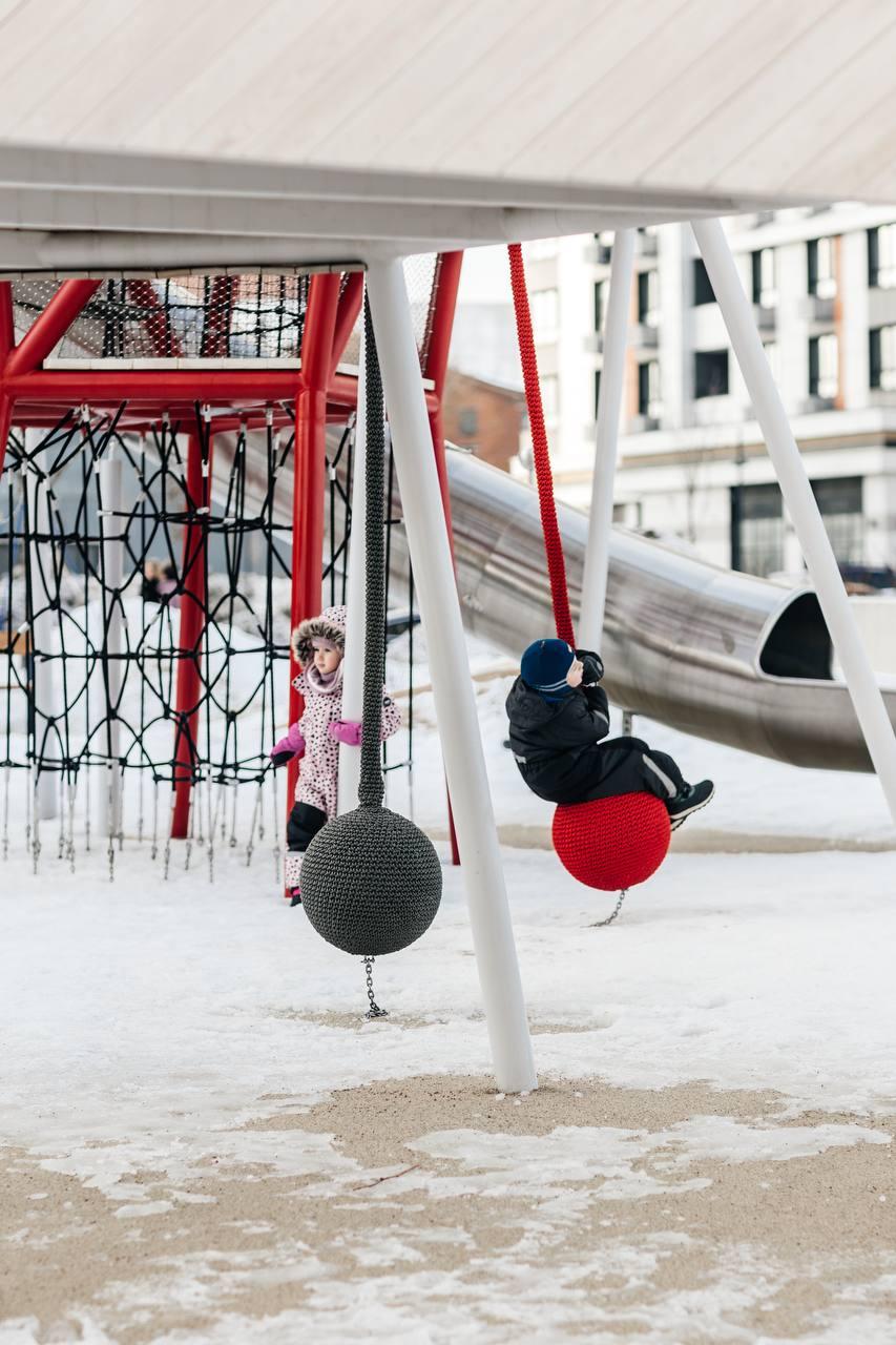 Вязанная качель бабл имеет диаметр 40 см, основание из стеклопластика.
