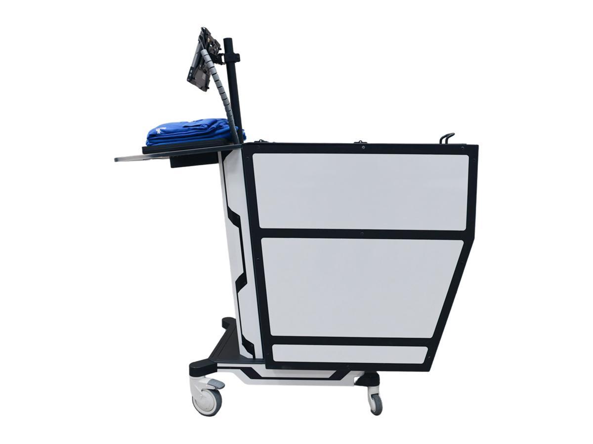 Основные функциональные особенности тележки включают в себя мобильность и автоматизацию учёта при работе с бельевым фондом. Интегрированная RFID-технология с высокой точностью и скоростью идентифицирует объекты, помещённые в корзину, и выводит результат на дисплей.