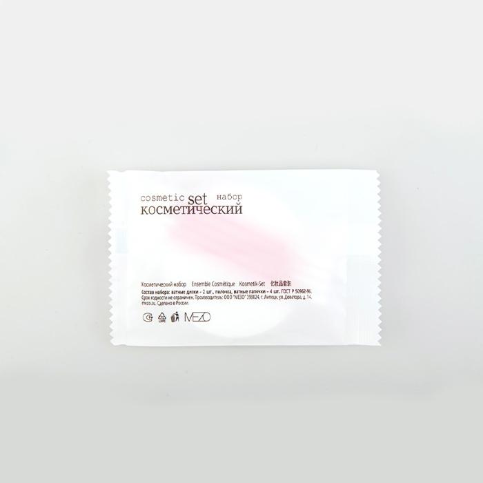 Набор состоит из 4 ватных палочек, пилочки и двух ватных дисков. Упаковка выполнена в виде белого флоупака в дизайне No Name. Набор сочетается с одноимённой коллекцией гостиничной косметики.