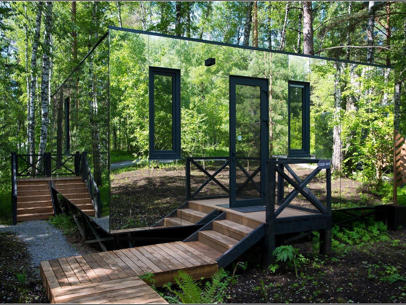 Модуль площадью 47 кв м включает в себя две спальни, гостиную, совмещенную с кухней, прихожая и санузел. Фасад - зеркальный.