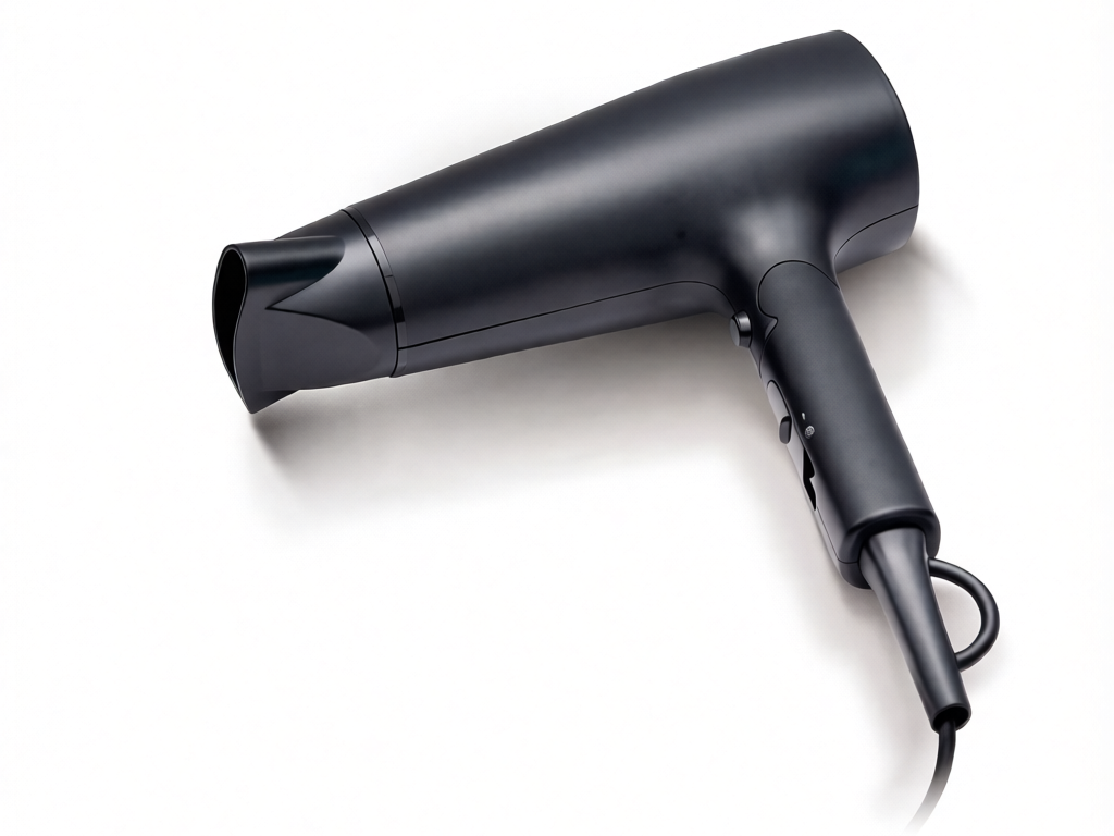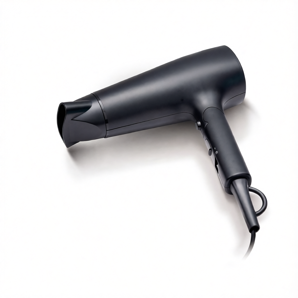 3) Компактное хранение: Благодаря складной ручке фен легко помещается в чемодан или узкую полку. В сложенном виде его габариты составляют всего 120×185×235 мм, а в разложенном — 270×185×235 мм. Петля для подвешивания на крючок добавляет удобства.