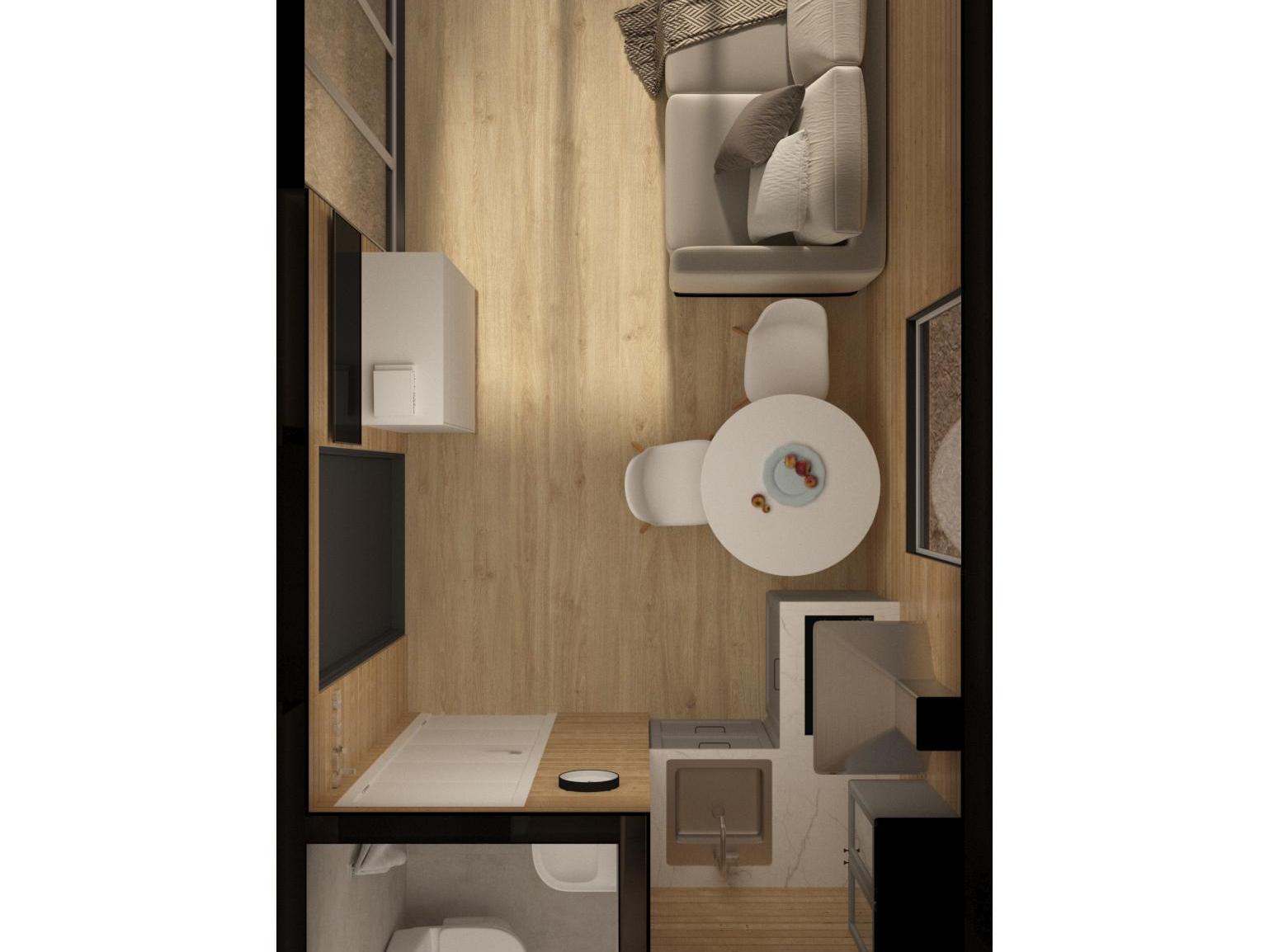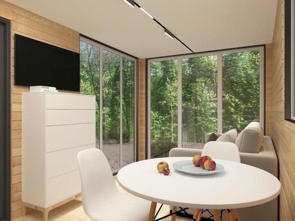 «Бу́хта Мини» — идеальный вариант для дачи, глэмпинга или аренды. Внутри — всё, что нужно для комфортного отдыха или жизни.