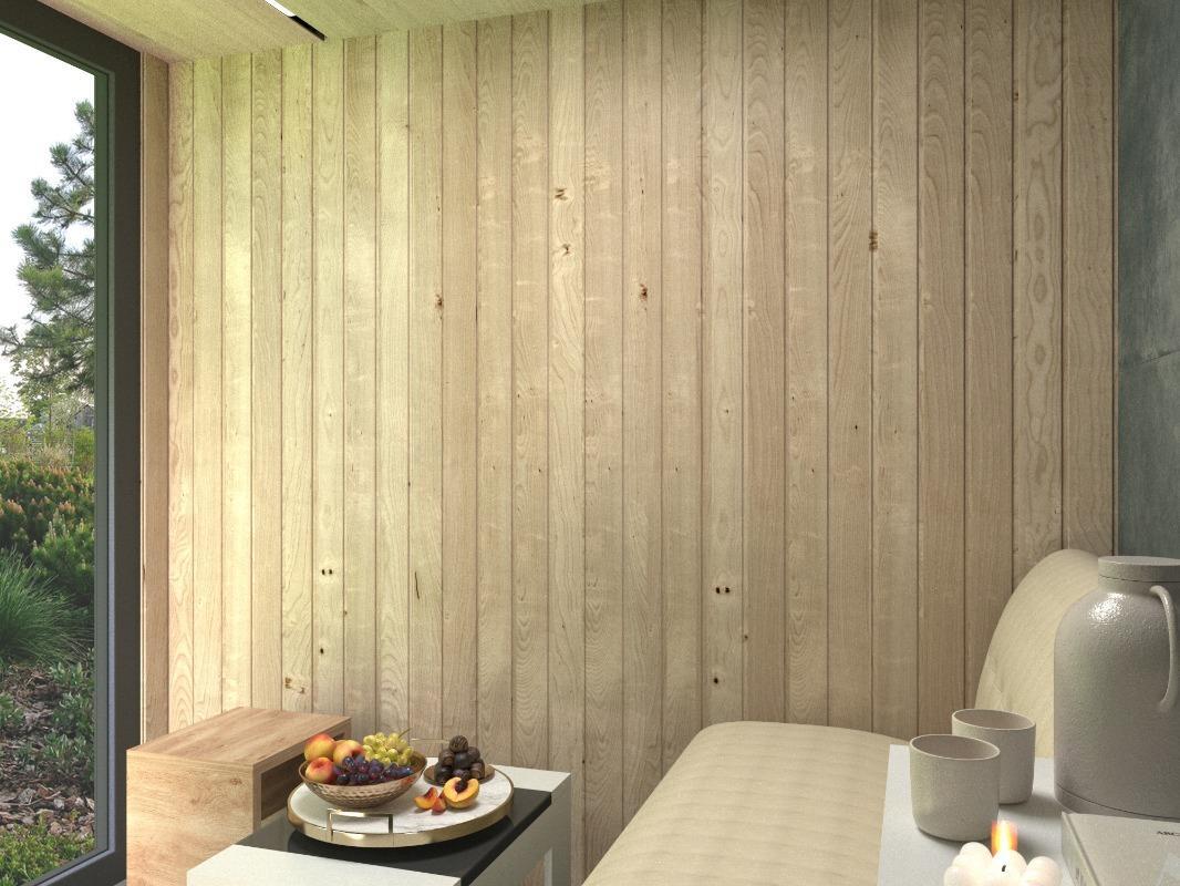 Стены и потолок: влагостойкий кварцвинил + вагонка из лиственницы