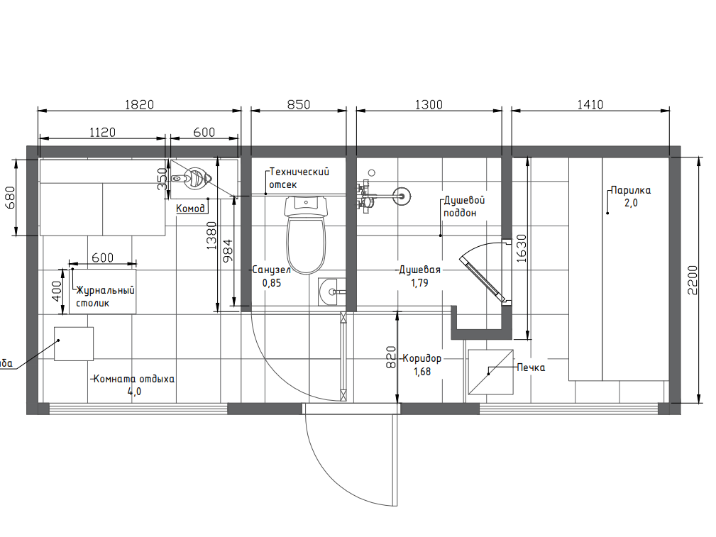 Дополнительные опции: дровяная печь с топкой внутри, обливная кадка, мебель по планировке, техника, терраса, навес-маркиза.
