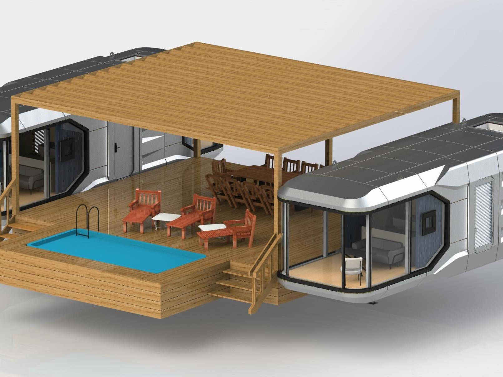 - Полная свобода творчества: от выбора эксклюзивных материалов отделки до нестандартных планировок, объединяющих несколько модулей в единое пространство