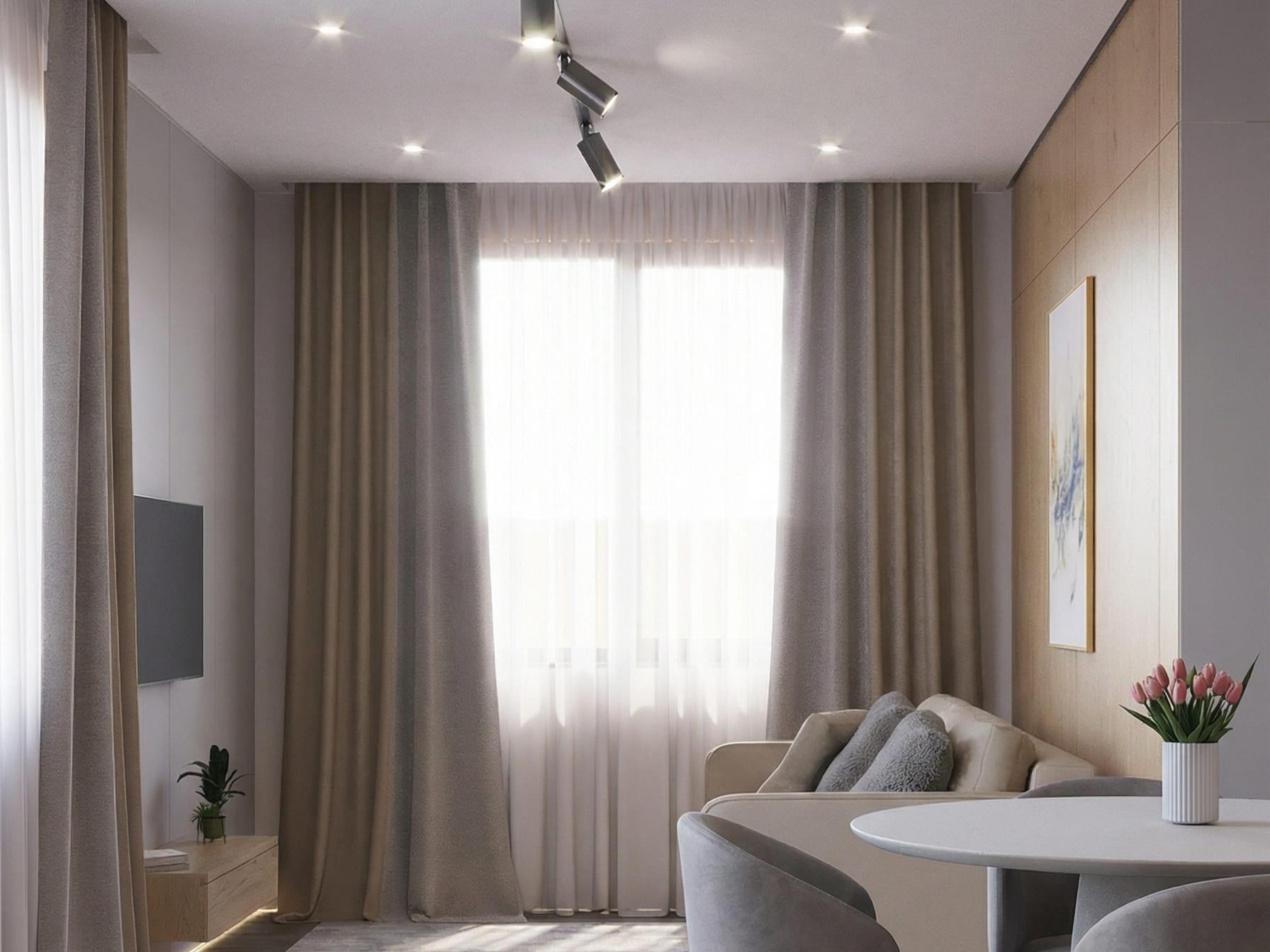 Планировка дома рассчитана на удобное размещение гостей: просторная кухня-гостиная, отдельные спальные зоны, санузел и большая терраса для отдыха на свежем воздухе. Панорамные окна наполняют интерьер светом и визуально расширяют пространство, создавая ощущение свободы и уюта.