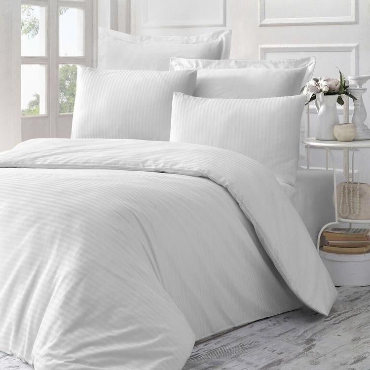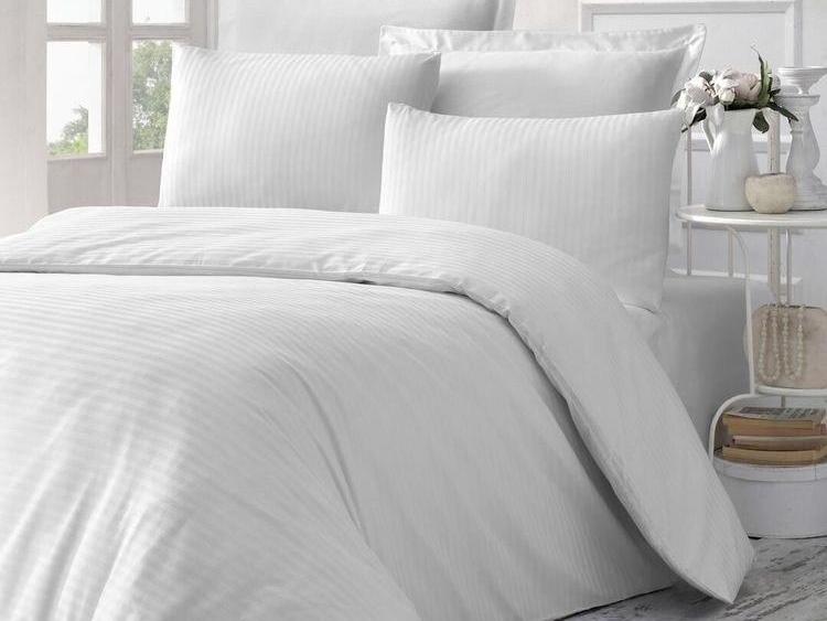 Комплект постельного белья 1,5 спальный белый сатин-страйп 1 см